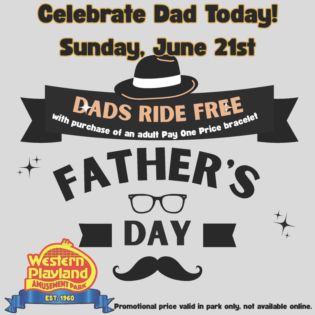 Bring your father and celebrate Father’s Day at Western Playland! Fathers ride FREE with purchase of an…
